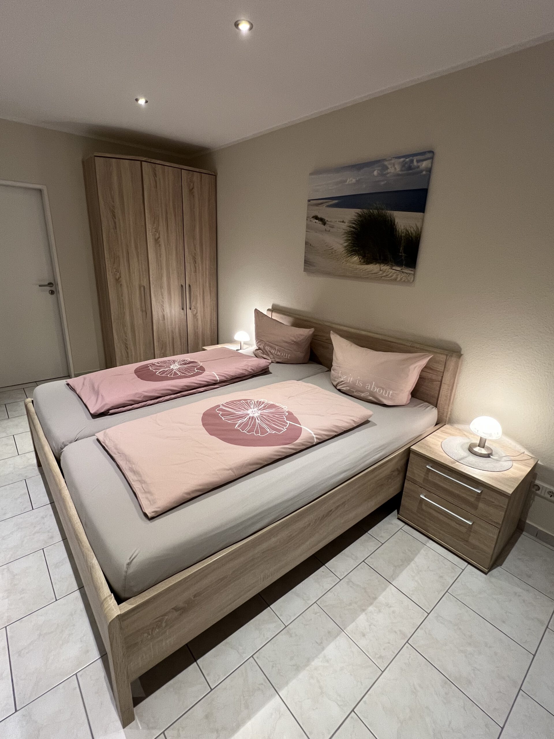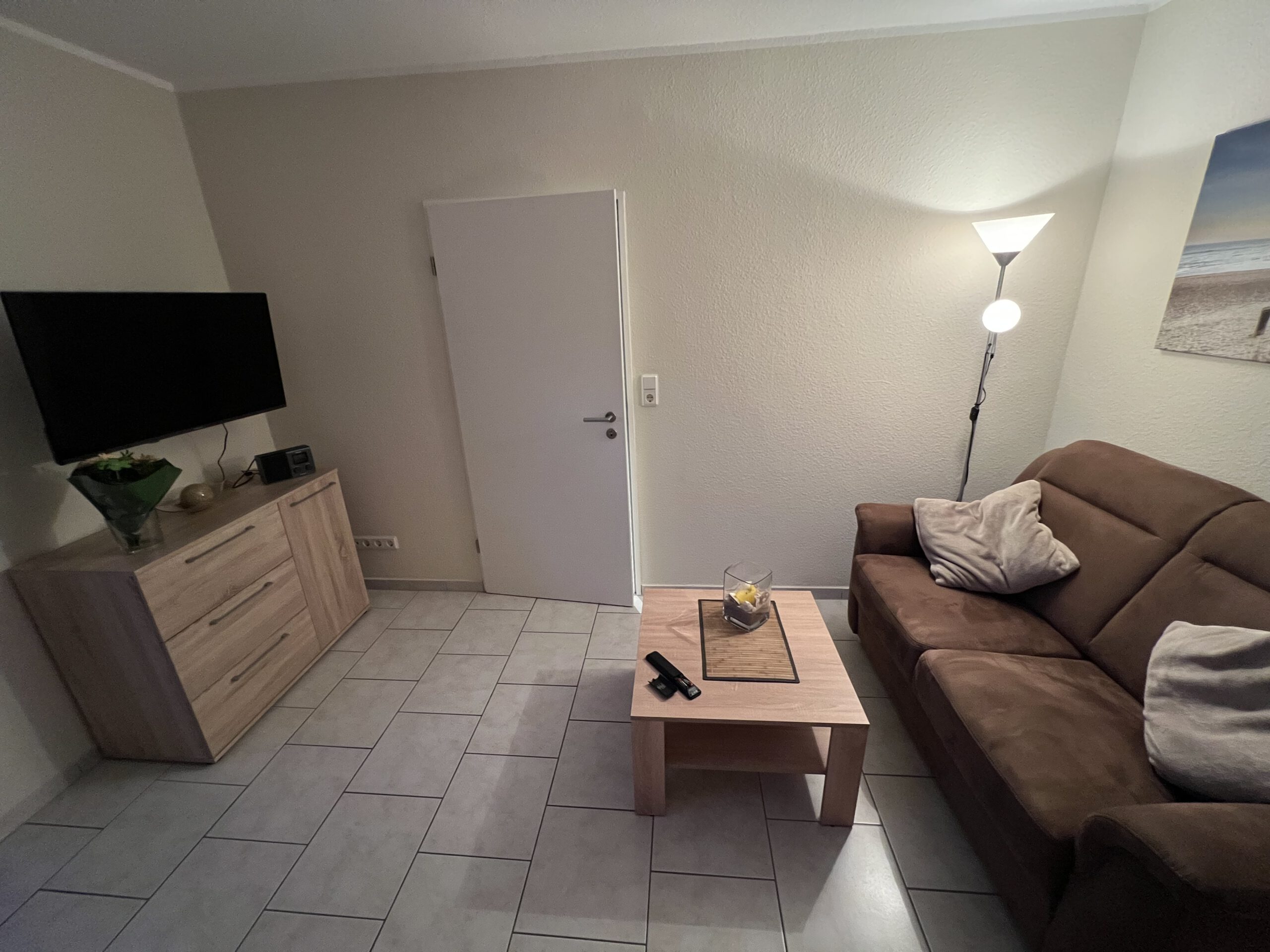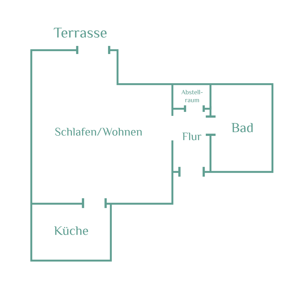 Wohnung A bietet eine durchdachte Raumaufteilung, moderne Ausstattung und eine angenehme Wohnatmosphäre – ideal für Paare, Alleinreisende oder Kurz- und Langzeitaufenthalte.Der offene Wohn- und Schlafbereich ist geschmackvoll eingerichtet und lädt zum Entspannen ein. Ein komfortables Bett, gemütliche Sitzmöglichkeiten sowie eine harmonische Beleuchtung sorgen für erholsame Stunden. Von hier aus gelangt man direkt auf die Terrasse, die zusätzlichen Platz zum Verweilen im Freien bietet.Die separate Küche ist vollständig ausgestattet und verfügt über Herd, Backofen, Kühlschrank sowie ausreichend Arbeitsfläche – perfekt für die Zubereitung eigener Mahlzeiten.Das moderne Badezimmer überzeugt mit einer großzügigen Dusche, stilvollen Fliesen und zeitgemäßer Ausstattung. Ein Abstellraum bietet praktischen Stauraum für Gepäck oder Haushaltsutensilien. Der Flur verbindet alle Räume übersichtlich und funktional.