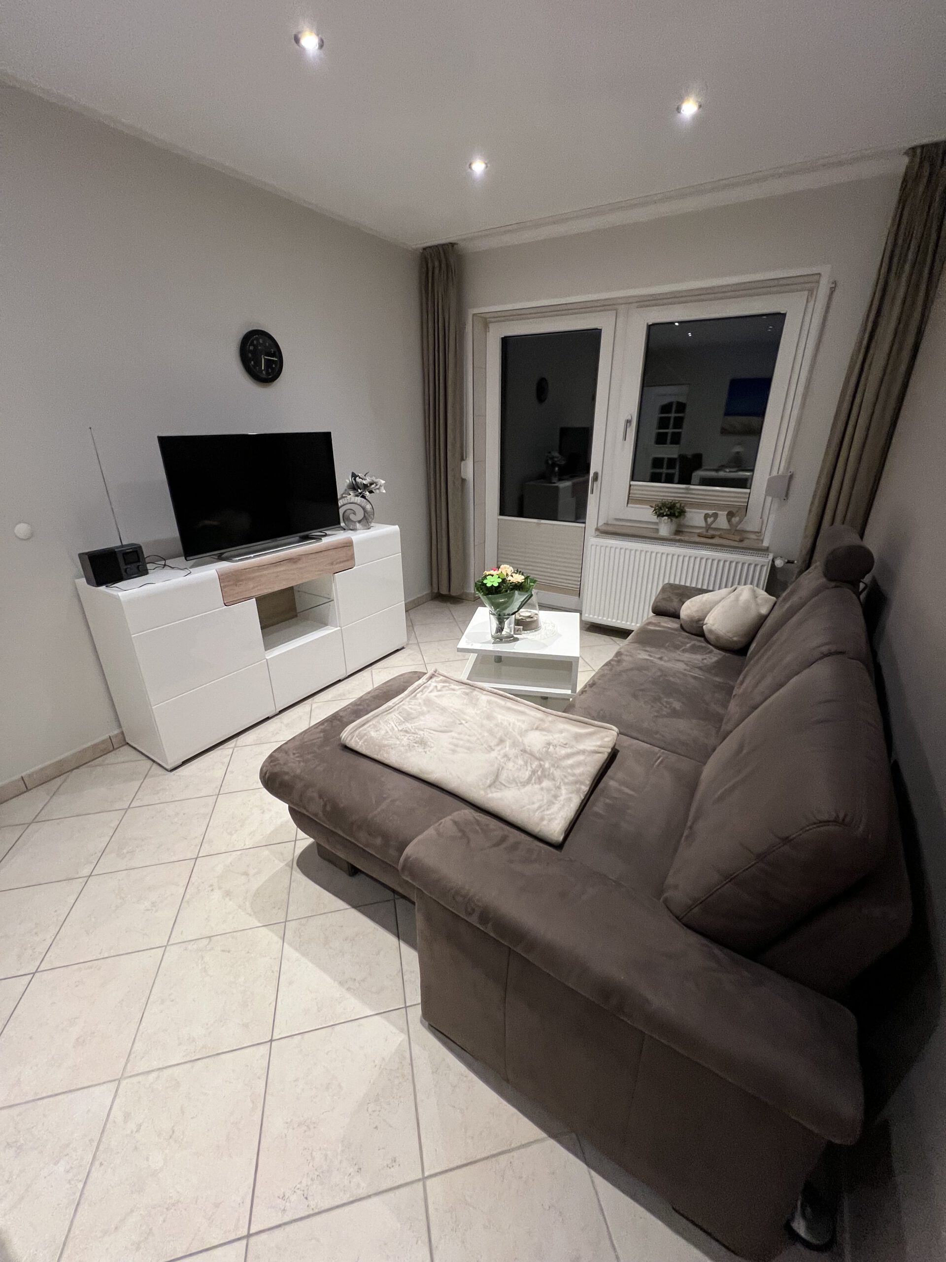 Wohnung B bietet viel Platz, eine klare Raumtrennung und eine moderne, gemütliche Ausstattung – ideal für Paare oder Gäste, die komfortables Wohnen mit Ruhe und Privatsphäre schätzen.Das separate Schlafzimmer ist stilvoll eingerichtet und mit einem komfortablen Doppelbett ausgestattet. Dezente Farben und eine ruhige Lage sorgen für erholsamen Schlaf. Von hier aus besteht direkter Zugang zur Terrasse, die zum Entspannen im Freien einlädt.Der großzügige Wohnbereich verfügt über eine bequeme Couch, einen Essplatz sowie viel Tageslicht. Die angenehme Beleuchtung und das moderne Interieur schaffen eine wohnliche Atmosphäre zum Abschalten und Wohlfühlen.Die separate Küche ist modern und vollständig ausgestattet mit Herd, Backofen, Kühlschrank, Spülmaschine sowie ausreichend Arbeitsfläche – ideal für Selbstversorger.Das moderne Badezimmer überzeugt mit einer großzügigen Dusche, stilvollen Fliesen und zeitgemäßer Sanitärausstattung. Ein funktionaler Flur verbindet alle Räume übersichtlich und bietet zusätzlichen Stauraum.